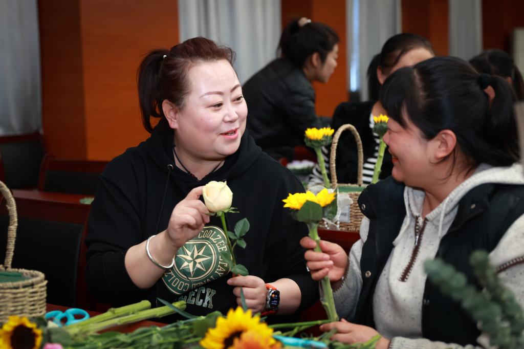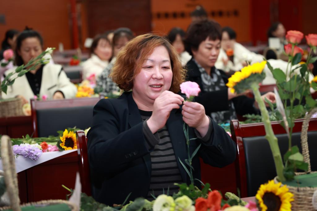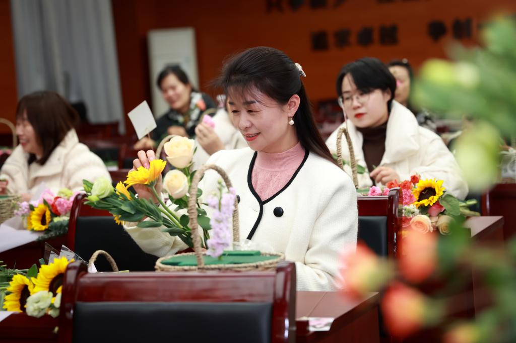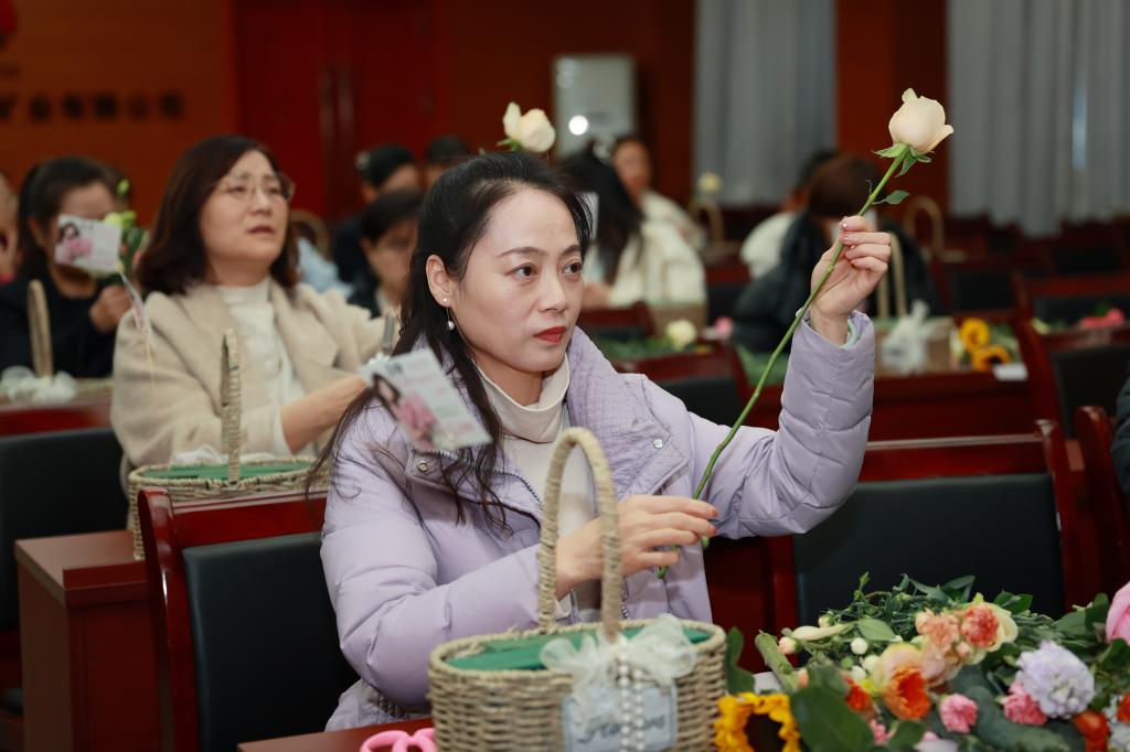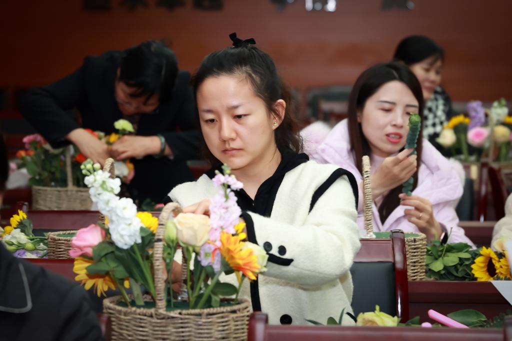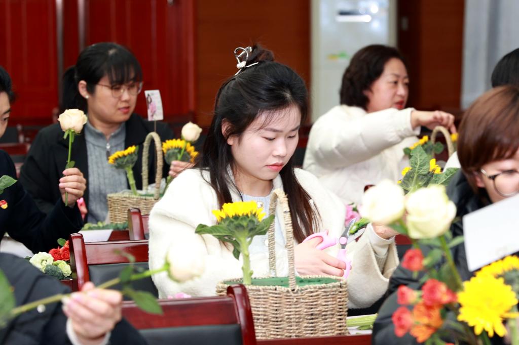 在下午開(kāi)展的插花活動(dòng)中,花藝?yán)蠋煆倪x花、裁剪、搭配、養(yǎng)護(hù)等多方面講解插花技巧,并現(xiàn)場(chǎng)進(jìn)行了修剪插花示范。參與的女職工們們聽(tīng)得津津有味,看得全神貫注。