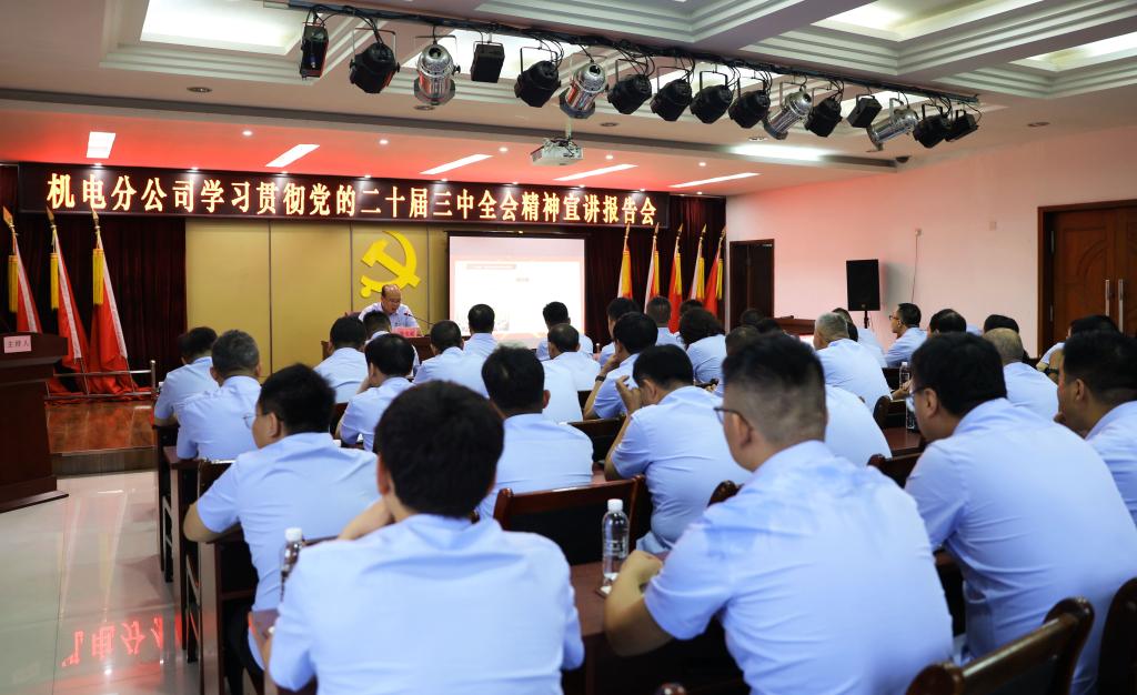為全面深入學(xué)習(xí)貫徹黨的二十屆三中全會精神,連日來,機電分公司嚴格按照礦業(yè)公司黨委統(tǒng)一安排部署,認真組織開展黨的二十屆三中全會精神宣傳宣講工作,推動黨的二十屆三中全會精神落地生根、見行見效,為企業(yè)高質(zhì)量發(fā)展注入新動能。