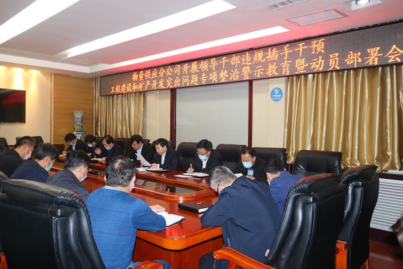 5月13日下午,供應(yīng)分公司召開領(lǐng)導(dǎo)干部違規(guī)插手干預(yù)建設(shè)和礦產(chǎn)開發(fā)突出問題專項(xiàng)整治工作警示教育暨動員部署專題會議,貫徹落實(shí)省委、省政府及省國資委開展整治工作的部署要求,學(xué)習(xí)傳達(dá)集團(tuán)公司、礦業(yè)公司專項(xiàng)整治工作會議精神,安排部署專項(xiàng)整治工作,警示動員干群職工聚焦工作重點(diǎn),扎實(shí)推進(jìn)落實(shí)。該公司班子成員和黨委中心組成員、業(yè)務(wù)部室負(fù)責(zé)人以及基層黨支部書記30余人參加了會議。