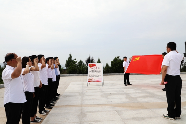 活動(dòng)中,該公司(礦)黨員干部沿著革命先烈的足跡來(lái)到軍臺(tái)嶺戰(zhàn)斗紀(jì)念廣場(chǎng),一同追憶軍臺(tái)嶺戰(zhàn)斗的革命歷史,身臨其境地體驗(yàn)當(dāng)時(shí)艱苦的革命戰(zhàn)爭(zhēng)環(huán)境。在紀(jì)念碑前,全體黨員向在軍臺(tái)嶺戰(zhàn)斗中犧牲的英烈們默哀、鞠躬,共同學(xué)習(xí)了黨章,隨后,重溫了入黨誓詞,面對(duì)黨旗莊嚴(yán)宣誓,表達(dá)自己牢記初心使命履行黨員責(zé)任和義務(wù)的信念與決心。