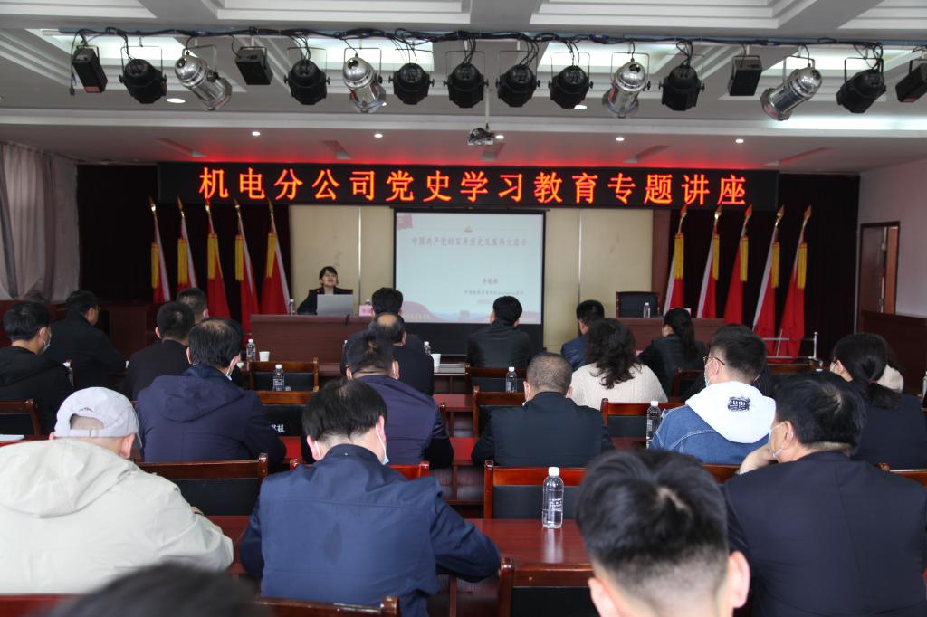 為進(jìn)一步推動黨史學(xué)習(xí)教育深入開展,營造良好學(xué)習(xí)氛圍,4月22日下午,機(jī)電分公司在該公司機(jī)關(guān)四樓會議室舉辦黨史學(xué)習(xí)教育專題講座,邀請到陜西省委黨校李曉燕教授授課。該公司領(lǐng)導(dǎo)班子成員、副科級以上黨員干部及黨員代表共計(jì)50余人現(xiàn)場聆聽了專題講座。