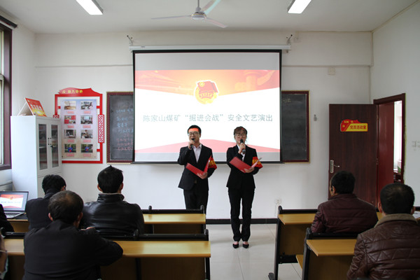 “掘進(jìn)會戰(zhàn)的號角已經(jīng)吹響,會戰(zhàn)的奮斗目標(biāo)和主要任務(wù)已經(jīng)明確..... ”一場安全文藝演出在激情的詩歌朗誦中拉開了帷幕。