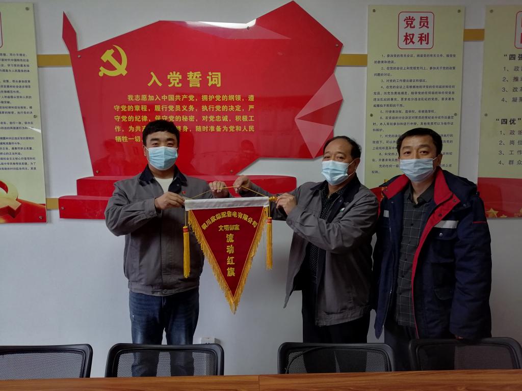近日,欣榮配售電公司2022年第一季度文明部室“流動紅旗”授旗儀式在該公司運行維護部黨員活動室舉行。