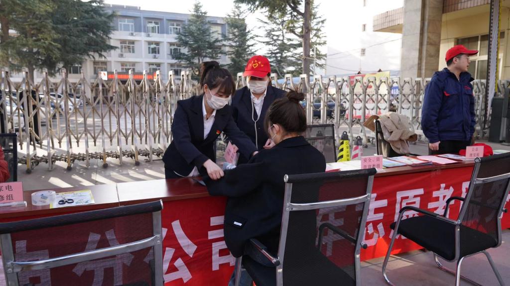 活動中,該公司“小紅帽”青年志愿服務(wù)隊員來到公司大門口,開展
