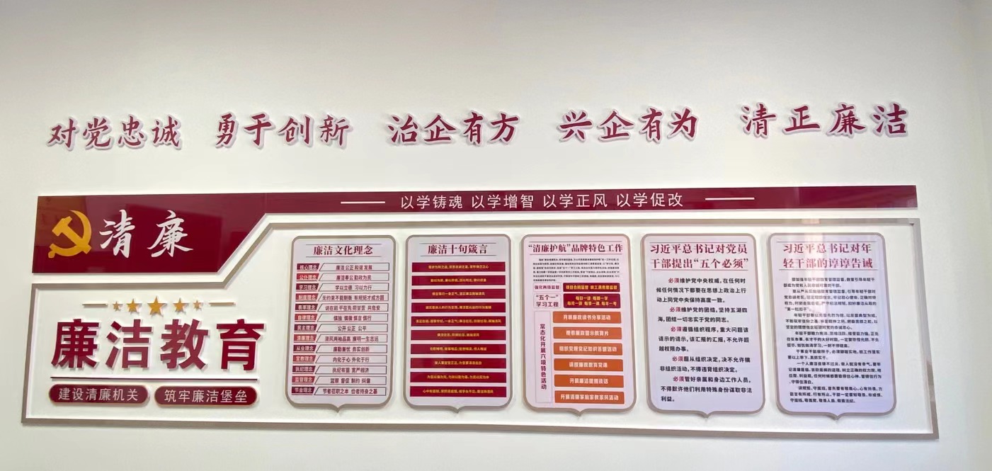 為有效發(fā)揮廉潔文化活動(dòng)陣地作用,該公司靚化廉潔文化墻,在公司廉潔文化室外走廊張貼廉潔文化標(biāo)語(yǔ)、格言,在廉潔文化室內(nèi)醒目位置張貼廉潔文化標(biāo)識(shí)和相關(guān)紀(jì)律規(guī)定。在建成的廉潔文化室內(nèi),分為制度篇、教育篇和警示篇三大板塊,主要為廉潔文化理念、廉潔十句箴言、廉潔特色工作、黨員干部五個(gè)必須、習(xí)近平總書記關(guān)于年輕干部的重要論述、黨的十八大以來(lái)貪腐典型案例等,時(shí)刻警示提醒每一名黨員干部嚴(yán)格自律,廉潔從業(yè)。該公司還創(chuàng)新設(shè)立談心談話區(qū)域,堅(jiān)持開(kāi)展廉潔提醒談話和干部談心活動(dòng),了解黨員干部的思想、學(xué)習(xí)、工作、家庭狀況及廉潔自律情況,及時(shí)發(fā)現(xiàn)指出存在的苗頭性、傾向性問(wèn)題,讓黨員干部“紅紅臉、出出汗”成為常態(tài),切實(shí)達(dá)到談話教育目的。