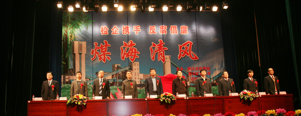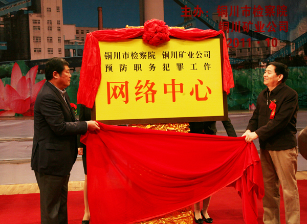 陜西省第二家、陜西煤化集團(tuán)和銅川市首家檢企預(yù)防職務(wù)犯罪工作網(wǎng)絡(luò)中心揭牌儀式,10月25日上午在銅川礦工俱樂部隆重舉行。隨著省高檢副檢察長史建泉,陜西煤化集團(tuán)公司紀(jì)委書記吳衛(wèi)平,銅川市委常委、紀(jì)委書記趙曉明,銅川市委常委、政法委書記袁丁興,銅川市檢察院檢察長王其敏,銅川礦業(yè)公司總經(jīng)理(局長)宋志剛,公司(局)黨委書記黃河等領(lǐng)導(dǎo)參加會(huì)議并為網(wǎng)絡(luò)中心揭牌,標(biāo)志著檢企聯(lián)手共同預(yù)防職務(wù)犯罪的一種新的工作形式在銅川礦業(yè)公司正式啟動(dòng)。