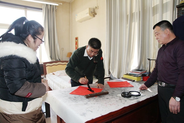 據(jù)了解,該礦黨委書記武永發(fā)連續(xù)5年利用雙休日和工作之余,義務(wù)為職工家屬寫春聯(lián)1500多幅,大紅“福”字1000多個(gè)。僅2月23日一天,為職工家屬送出100多幅對(duì)聯(lián),60多個(gè)“?!弊?。