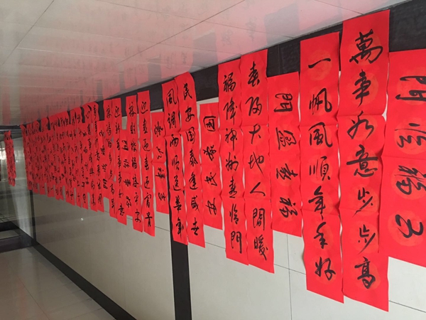 大寒過后的金華山礦格外寒冷,滴水成冰。為了防止墨汁結(jié)冰,礦黨委書記武永發(fā)利用雙休日和晚上時(shí)間,為礦區(qū)職工家屬義務(wù)書寫春聯(lián)。武書記在自己休息室里擺開桌案,鋪上紅紙,筆走龍蛇、揮灑筆墨,前來討要春聯(lián)的職工家屬一邊等候,一邊欣賞武書記的書法作品。職工家屬有求必應(yīng),不少職工家屬看到身邊這位熟悉的礦黨委書記寫出了剛勁有力,飄逸瀟灑的好書法,一個(gè)個(gè)贊嘆好字好書法,一副副滿含吉祥祝福的春聯(lián)、一個(gè)個(gè)大紅的“福”字激勵(lì)著全礦干部職工紅紅火火過大年,砥礪奮進(jìn)謀發(fā)展,也為年味十足金華山礦增添了一道靚麗的風(fēng)景線。