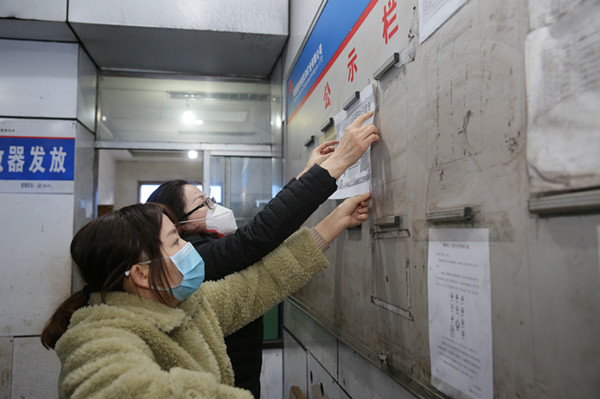 2月2日下午,在柴家溝井井口,該礦工會(huì)女工委組織女職工開(kāi)展疫情防控宣傳活動(dòng)。