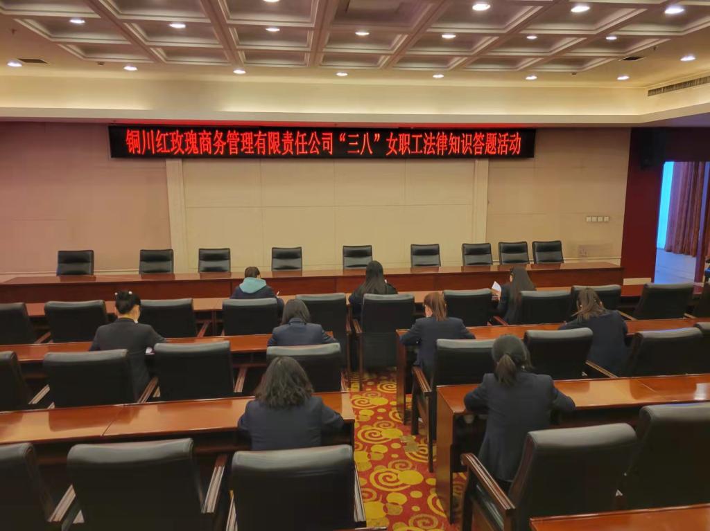 為深入學(xué)習(xí)貫徹習(xí)近平新時(shí)代中國(guó)特色社會(huì)主義思想,切實(shí)維護(hù)女職工合法權(quán)益, 3月7日,銅川紅玫瑰商務(wù)管理有限責(zé)任公司開展了“凝聚巾幗情?建功新時(shí)代”答題活動(dòng)。