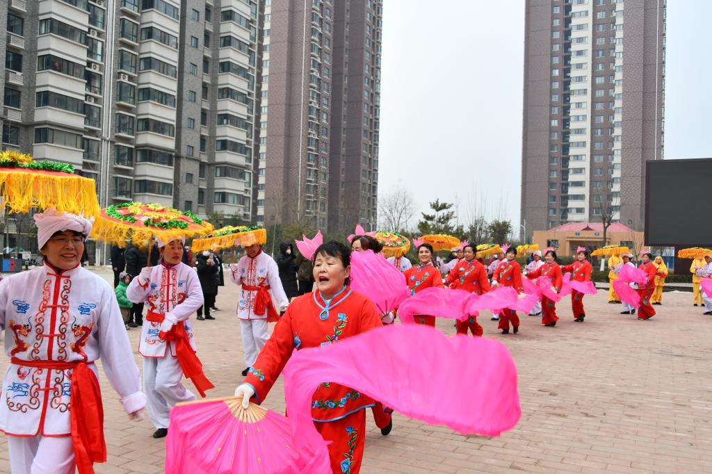 活動在鏗鏘有力的鑼鼓聲中拉開序幕,一支由轄區(qū)居民自發(fā)組建的秧歌隊開始了秧歌表演。演員們各個身穿鮮艷服裝,腰間系著五彩長綢,隨著鑼鼓聲變換著隊形,銅煤繡園小區(qū)鑼鼓喧天,熱鬧非凡。秧歌隊演員們扭出了風采,邁出了自信,舞出了健康,展現(xiàn)了積極向上的精神風貌。大家個個精神抖擻,雙手揮動鼓槌,氣勢磅礴,鼓聲震天,充分展示了傳統(tǒng)文化的魅力和活力。