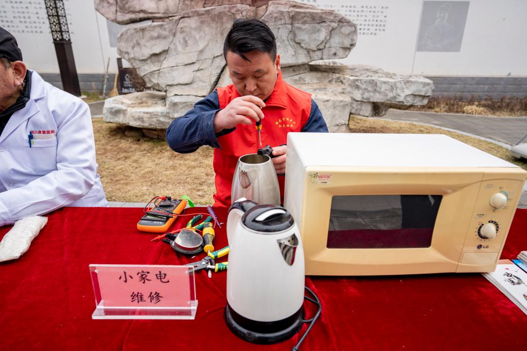 “小服務(wù)”匯聚“大幸?!薄C吩沸^(qū)便民服務(wù)點前,志愿者們?yōu)榫用裉峁坌睦戆l(fā)、小家電維修、愛心茶水、政策咨詢等多項服務(wù)?!凹敉觐^發(fā)精神多了!”“電水壺修好了,省得買新的......”住戶們臉上洋溢的笑容,成為志愿服務(wù)最生動的注腳。