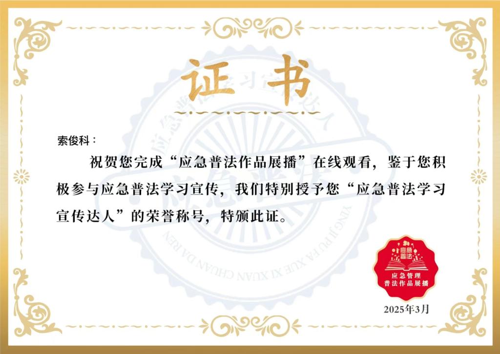 “學賽享”融合添活力,積分賦能掀熱潮。在活動形式上,該項目部突破傳統(tǒng)模式,打造“學、賽、享”融合的創(chuàng)新矩陣。所屬各單位組織集體學習會,結合展播作品開展案例研討,將法律條文轉化為生動實踐;開展“普法達人”積分競賽,營造“比學趕超”的良好氛圍;鼓勵職工將普法作品轉發(fā)至親朋好友,形成“一人參與、全家受益”的輻射效應。同時,創(chuàng)新推出“積分兌換”機制,職工可通過累積積分兌換“應急普法學習宣傳達人”電子結業(yè)證書,進一步激發(fā)參與動力。