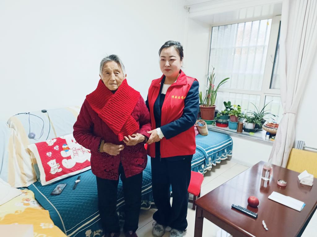 當(dāng)天上午,黨員志愿者們帶著滿載愛意的圍巾,逐一走進(jìn)獨(dú)居老人家中。黨員志愿者們親切地與老人拉起家常,詳細(xì)詢問他們的身體狀況和生活情況,傾聽他們的心聲和需求。隨后,黨員志愿者們將一條條精心編織的圍巾輕輕地圍在老人的脖子上,并細(xì)心地為他們調(diào)整好。一位老人撫摸著柔軟的圍巾,眼中閃爍著感動(dòng)的淚花,激動(dòng)地說:“孩子們,你們真是太貼心了,這么冷的天,還想著我們這些老人,這圍巾圍在脖子上,暖在心里啊?!?/p>