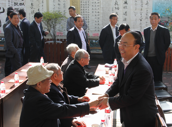 銅川礦業(yè)公司、銅川煤化實(shí)業(yè)公司黨委書記黃河與離退休老干部親切握手