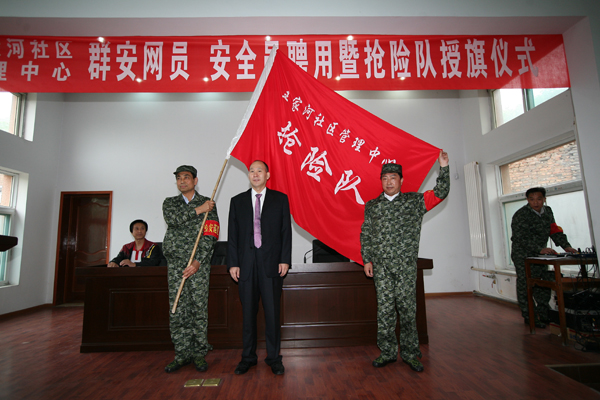 王家河社區(qū)管理中心舉行群安網員、安全員暨搶險隊授旗儀式