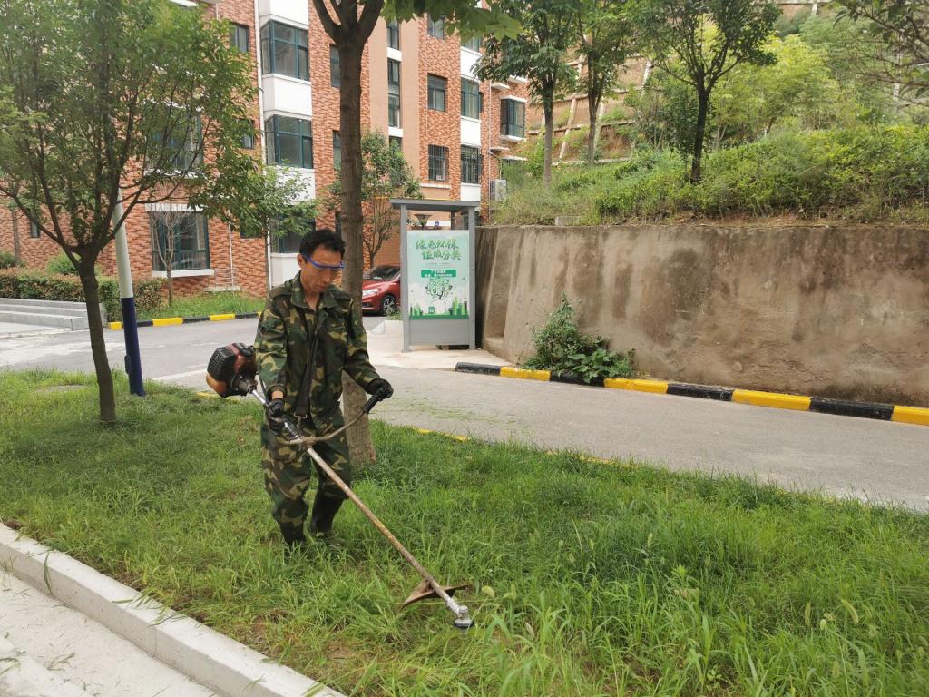 活動(dòng)中,該中心工作人員準(zhǔn)備各類除草工具穿梭在綠樹綠草之中,有的修剪樹枝,有的修剪草坪,有的清理雜草裝車,分工配合,互相協(xié)作,干得熱火朝天,小區(qū)居民看到后也積極加入其中。經(jīng)過一個(gè)上午的“奮戰(zhàn)”,路邊的雜草、落葉等都被清理干凈,小區(qū)的環(huán)境衛(wèi)生得到了明顯改善。