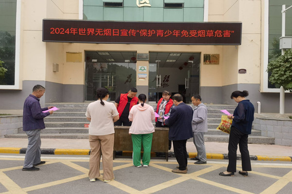 活動現(xiàn)場,該項目部所屬各單位干部職工、志愿者通過健康教育課堂、健康教育宣傳欄、懸掛橫幅、向居民發(fā)放有關(guān)吸煙危害健康的資料,向轄區(qū)職工群眾講解吸煙的危害,讓轄區(qū)職工群眾了解到煙草制品不僅會損害未成年人的身體器官,也會阻礙其精神和智力發(fā)育,更會對未成年人價值觀的形成產(chǎn)生負(fù)面影響,號召職工群眾一起行動起來,共同營造無煙健康成長環(huán)境。