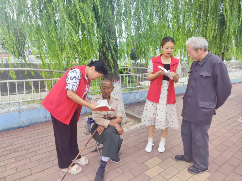 宣講中,該中心組織志愿者帶著宣講書籍進入居民區(qū),為行動不便的老黨員送去了學(xué)習(xí)書籍,并對過路群眾也進行了詳細講解,號召廣大黨員、群眾一起學(xué)習(xí)全會內(nèi)容,領(lǐng)會全會精神,切實將黨的好政策、好聲音傳入千家萬戶。