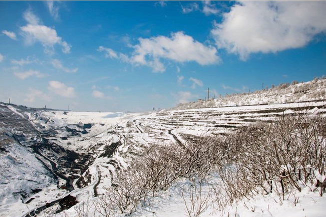 每年冬季的礦山顯得獨(dú)具一格,從山下往山頂望去能看見清晰依舊的松樹,還有一脈相連的大山。