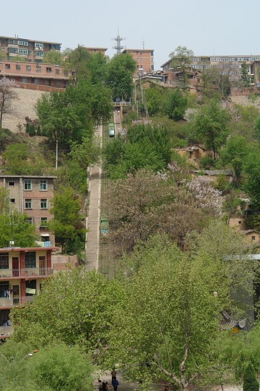 我不知道這樣的絞車別的地方有沒有:王石凹大約從20世紀(jì)50年代蘇聯(lián)人來建設(shè)的時(shí)候就開始有了——絞車道北邊有整齊的工房,那是蘇聯(lián)人建設(shè)的蘇式風(fēng)格的職工宿舍,一般是二層紅磚樓,當(dāng)時(shí),那些房子是礦上有身份地位的干部的住宅。整齊的工房下的山溝里是密集的窯洞、礦工擁擠的棚戶。東邊是井架上轉(zhuǎn)動(dòng)著的巨大天輪,連接著井下的鋼纜。有時(shí),礦上的運(yùn)煤火車噴著乳白色的濃煙轟鳴著駛進(jìn)隧道……這些景致每天都在我眼前晃過。小孩子喜歡玩纜車,扒車跳車,有危險(xiǎn),跳不好就從山上滾下來受傷,學(xué)生的父母們都要叮囑自己的孩子不要扒車跳車,但還是能見到很多學(xué)生呼嘯著成群接隊(duì)地跳車扒車作為游戲。熟能生巧,很多人都練就了跳飛車扒飛車的功夫,我還沒有見過哪個(gè)人跳絞車受傷。有點(diǎn)可怕的是運(yùn)煤的蒸汽火車。有些學(xué)生家住在火車道東邊——比我家住的翻砂組工場還要遠(yuǎn),每天上下學(xué)他們要過火車道,滿天星斗的凌晨,學(xué)生們就要成群結(jié)隊(duì)走過火車道。有時(shí),看到蒸汽機(jī)車好像瞪大眼睛發(fā)射出亮白的遠(yuǎn)射燈隆隆開來,龐大的機(jī)車像山一樣壓過來。當(dāng)時(shí),也聽說過有人經(jīng)過火車道時(shí)被軋斷了腿,流盡血送了命。蒸汽火車是運(yùn)煤炭的。我記得火車開到銅川要四五十分鐘。一出王石凹車站,火車就鉆進(jìn)一個(gè)長長的隧道,再開幾分鐘,到了喬子梁,又過一個(gè)長長的隧道?;疖囅耱暄训纳撸邳S土高原的溝壑里蠕動(dòng)。