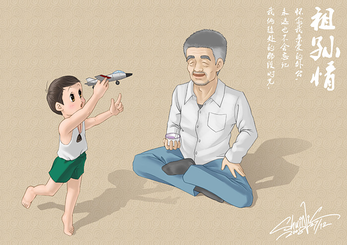 上學那時,只要每逢假期我都會去外婆家住上一段時間,在那里我很受歡迎,備受寵愛??赡苁俏液屯夤P系最鐵的原因吧,也可能是我年齡最小的緣故,嘿嘿!所以外公對我向來是疼愛有加,不管有什么好吃的、好玩的他總會第一時間想到我,任由我多么的淘氣、多么不聽話,外公他始終都是第一個站出來保護我的人,總之,在他心里,我就是他老人家的心肝寶貝,絕不讓我受半點委屈,更不允許他人欺負,甚至有時連媽媽和舅舅都羨慕嫉妒。每當犯了錯誤,媽媽要教訓我時,外公總能第一時間出現(xiàn),像菩薩降臨一般,上前幫我解圍,將整個局勢扭轉,化險為夷,但每次敗下陣來的媽媽心里從來都不服,但也只能無奈的沖著外公說道:“爸,您還護著他呀,您把他都慣成啥樣子了?!边@時的外公卻以笑臉相迎、不以為然,開始用他那具有超強說服力的“胡氏大道理”進行輪番轟炸,最后再將媽媽徹底的降服。最值得我津津樂道而又讓我十分贊同外公說的一句話就是“娃現(xiàn)在還小著呢,慢慢大了就知道啥了。”這句話弄的媽媽是沒一點脾氣了,最終只能甘拜下風,和平的收場。
