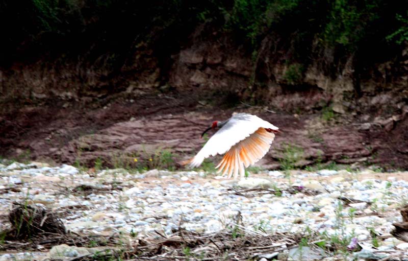 當(dāng)時(shí)放飛的32只朱鹮,能否適應(yīng)當(dāng)?shù)氐淖匀画h(huán)境、能否成功繁育,是對(duì)銅川生態(tài)環(huán)境的考驗(yàn)。今年4月30日,首只北方朱鹮順利在銅川誕生,這標(biāo)志著我國(guó)人工野化放飛朱鹮取得重大突破。5月1日,第二只小朱鹮在經(jīng)歷了降溫天氣后誕生。6月1日,筆者在耀州區(qū)柳林沮河灘上有幸拍攝到了野生狀態(tài)下的朱鹮高雅身姿,以及同樣十分珍稀的黑鸛矯健身影。