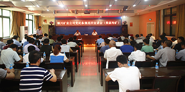 7月26日上午,公司黨紀條規(guī)第一巡回宣講組成員王發(fā)明、李國璧、顧寶成三位同志到柴家溝礦進行黨紀條規(guī)宣講。該礦副科以上領導、機關科室管理人員以及柴家溝實業(yè)分公司的黨員干部共計80余人聆聽了宣講。