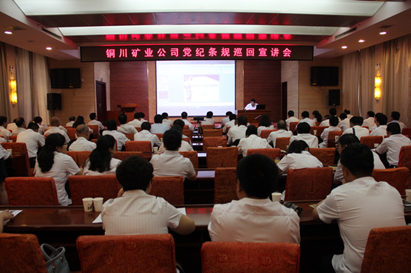 7月21日上午,銅川礦業(yè)公司黨紀(jì)條規(guī)第四巡回宣講組成員許江濤、田戰(zhàn)強(qiáng)、武永發(fā)三位同志到銅富公司進(jìn)行黨紀(jì)條規(guī)宣講,銅富公司班子成員、機(jī)關(guān)全體黨員干部、基層黨政領(lǐng)導(dǎo)及所屬單位黨員代表共計(jì)100多人聆聽了宣講。