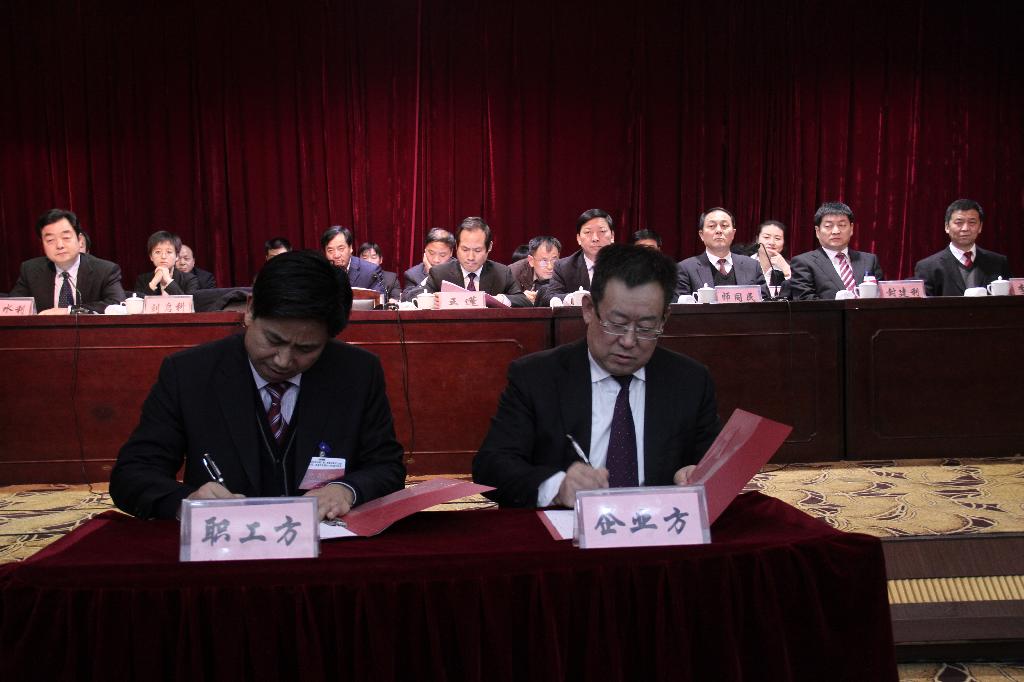 下午的大會(huì)由公司副總經(jīng)理劉水利主持。會(huì)上,企業(yè)方代表與職工方代表簽訂了公司2014年《工資集體合同》,通報(bào)了民主測(cè)評(píng)公司領(lǐng)導(dǎo)班子和領(lǐng)導(dǎo)人員結(jié)果,通過(guò)了大會(huì)決議。