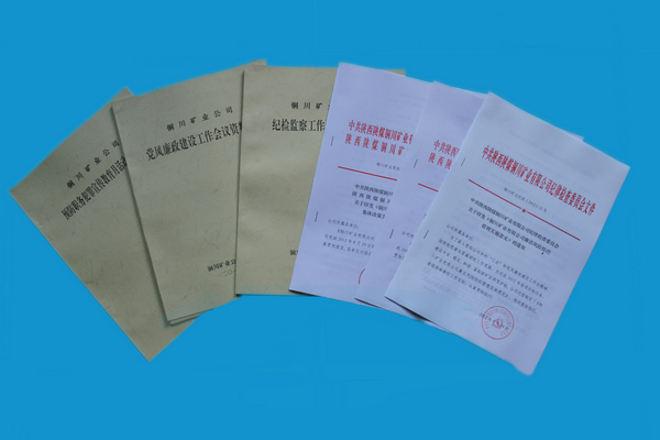 會上,還制定出臺了三個制度,分別是礦業(yè)公司《“三重一大”集體決策實施辦法》、《廉政風險防控管理制度》、《“四位一體”(紀檢、監(jiān)察、審計、檢察院)監(jiān)督機制實施意見》。印發(fā)了《銅川礦業(yè)公司紀檢監(jiān)察工作調研資料匯編》《銅川礦業(yè)公司黨風廉政建設工作會議資料匯編》《銅川礦業(yè)公司預防職務犯罪宣傳教育月活動資料匯編》等學習資料匯編。