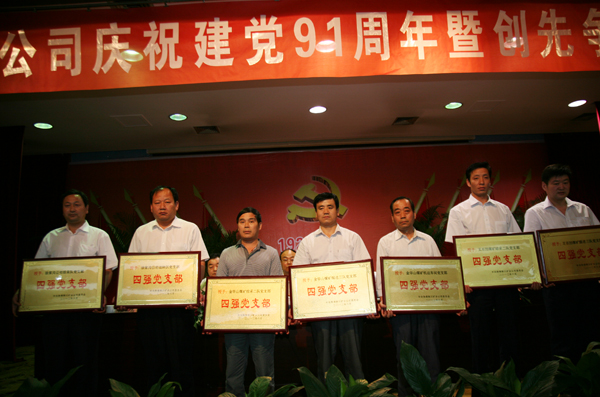 在歡快的音樂和熱烈的掌聲中,公司領(lǐng)導(dǎo)向3個(gè)“四好”領(lǐng)導(dǎo)班子、3個(gè)“四強(qiáng)”黨組織、62名“四優(yōu)”黨員、23名優(yōu)秀黨務(wù)工作者頒發(fā)了獎(jiǎng)牌和榮譽(yù)證書。