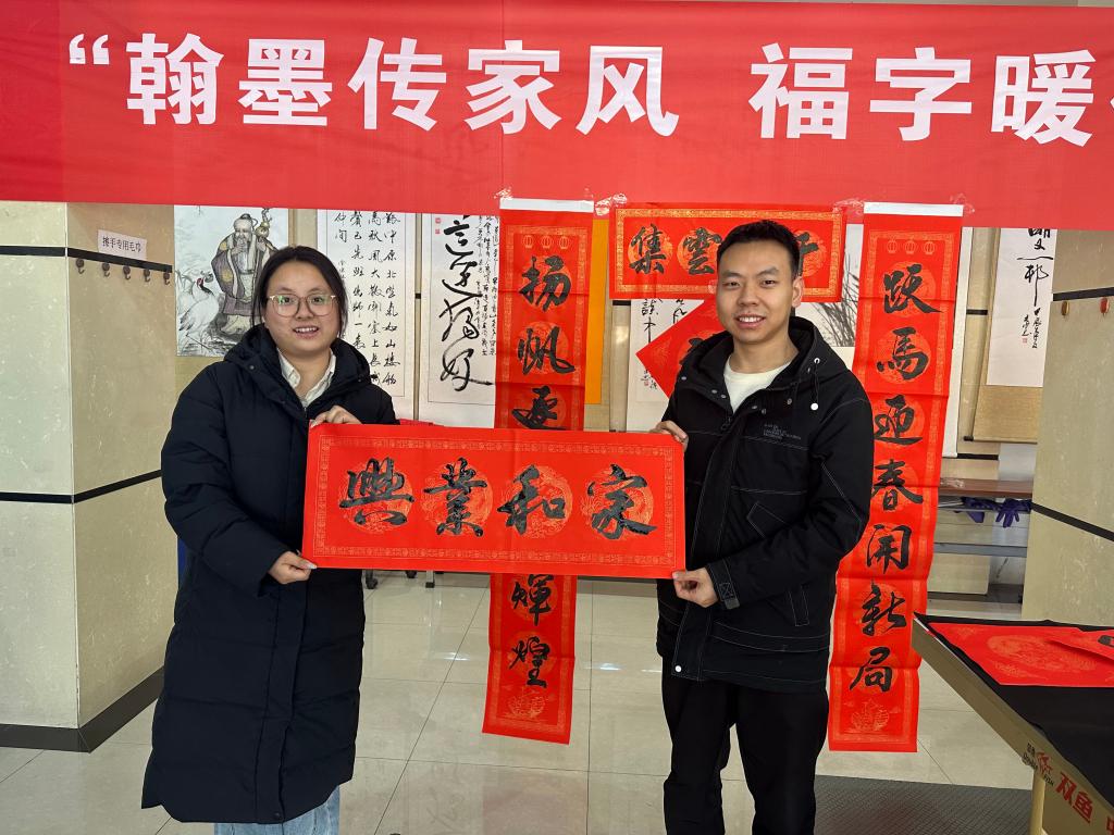 聞?dòng)嵍鴣?lái)的青工絡(luò)繹不絕,圍聚在書(shū)桌旁,一邊欣賞青年志愿者們的書(shū)法風(fēng)采,一邊輕聲討論著心儀的春聯(lián)內(nèi)容,現(xiàn)場(chǎng)歡聲笑語(yǔ)不斷。大家有序排隊(duì),有的挑選貼合家庭的吉祥春聯(lián),有的請(qǐng)志愿者定制專屬祝福,拿到春聯(lián)的職工臉上都洋溢著幸福的笑容,小心翼翼地將墨跡未干的春聯(lián)疊好,不住地為團(tuán)員青年的貼心服務(wù)點(diǎn)贊。志愿者們還主動(dòng)幫忙晾曬春聯(lián)、講解春聯(lián)寓意,忙碌的身影與紅彤彤的春聯(lián)相映成趣,成為礦區(qū)里最亮眼的風(fēng)景。