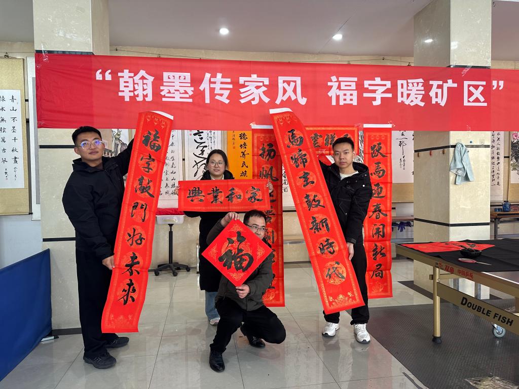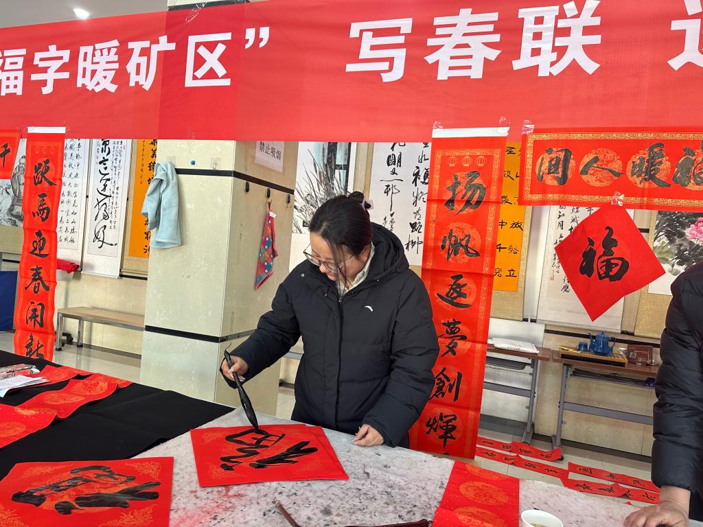 活動(dòng)現(xiàn)場(chǎng)整齊鋪開(kāi)的大紅宣紙、擺放有序的筆墨硯臺(tái),構(gòu)成了一幅喜慶祥和的新春畫卷。來(lái)自礦各團(tuán)支部的青年志愿者們化身“送福人”,凝神聚力、揮毫潑墨,筆鋒起落間,一幅幅字跡工整、寓意吉祥的春聯(lián)躍然紙上。既有“駿馬踏春興礦業(yè),福光映歲啟新程”的礦山特色祝福,也有“天增歲月人增壽,春滿乾坤福滿門”的傳統(tǒng)佳句,還有飽含美好期許的“?!弊?,每一筆都承載著團(tuán)員青年的真誠(chéng)祝福,每一幅都寄托著大家對(duì)新年的美好憧憬。