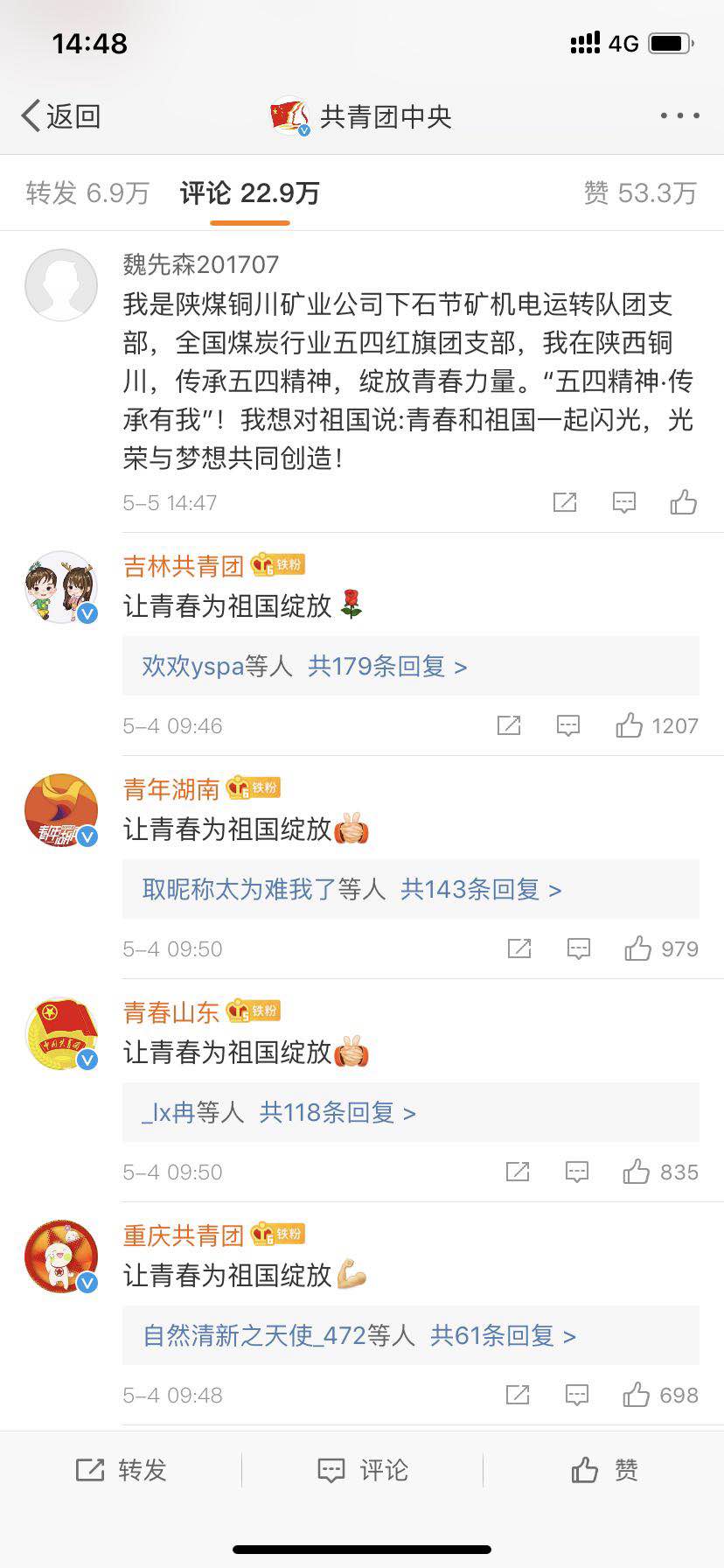 自4月27日公司紀(jì)念五四運(yùn)動(dòng)101周年表彰會(huì)暨團(tuán)員青年“六談”討論會(huì)召開(kāi)后,各級(jí)團(tuán)組織先后召開(kāi)會(huì)議表彰先進(jìn),選樹(shù)典型,組織團(tuán)員青年認(rèn)真學(xué)習(xí)習(xí)近平總書(shū)記的寄語(yǔ),通過(guò)緬懷了五四先驅(qū)崇高的愛(ài)國(guó)情懷和革命精神,號(hào)召團(tuán)員青年高舉“五四”旗幟,緊貼時(shí)代脈搏,貢獻(xiàn)青春力量,肩負(fù)起黨賦予的光榮職責(zé),團(tuán)結(jié)帶領(lǐng)廣大團(tuán)員青年為新時(shí)代黨和國(guó)家事業(yè)發(fā)展作出新的更大貢獻(xiàn),奮力書(shū)寫(xiě)推動(dòng)公司轉(zhuǎn)型升級(jí)、高質(zhì)量發(fā)展的嶄新青春篇章。