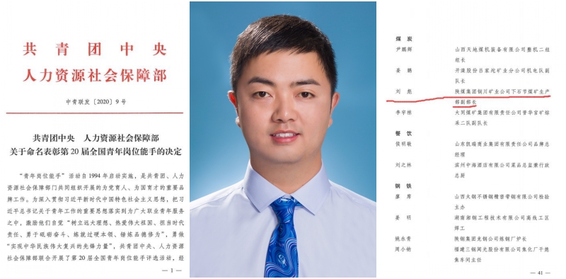近日,在共青團中央、人力資源社會保障部聯合開展的第20屆全國青年崗位能手評選活動中,公司下石節(jié)煤礦青工劉彪榮膺“全國青年崗位能手”稱號,展現出了一名銅煤青年愛崗敬業(yè)、甘于奉獻的優(yōu)秀品質。