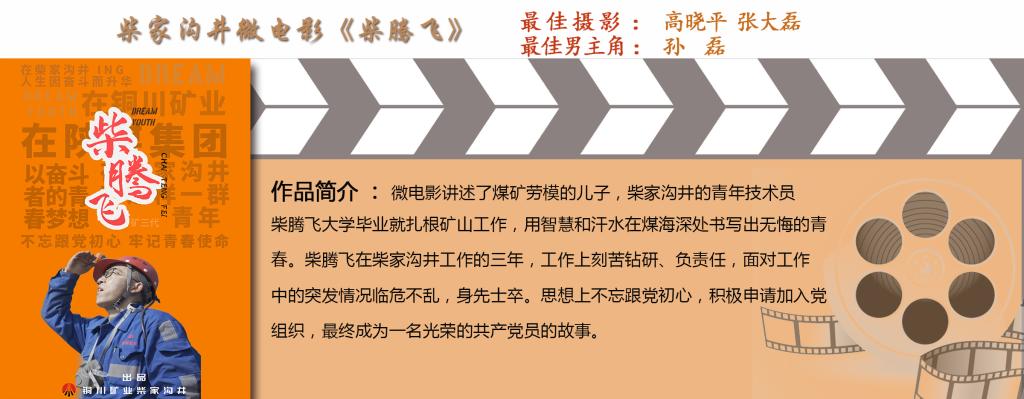 柴家溝井微電影《柴騰飛》,以主人公柴騰飛工作和個(gè)人感情生活兩條線鋪陳敘述,用智慧和汗水在煤海深處書(shū)寫(xiě)無(wú)悔青春,扎根礦山、圓夢(mèng)礦山的故事,榮膺“最佳攝影”、“最佳男主角”兩個(gè)獎(jiǎng)項(xiàng)。