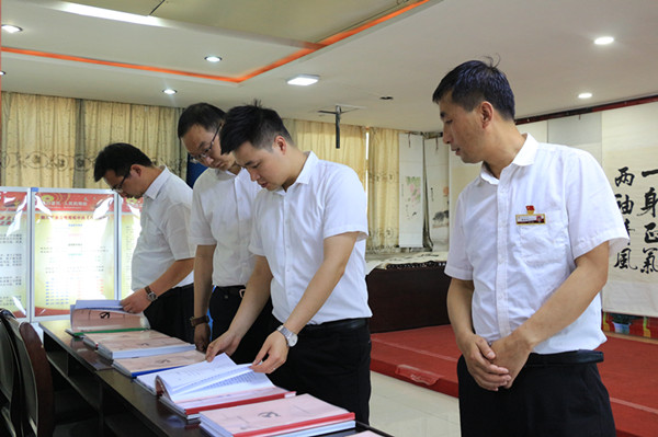 胡寶銅一行4人到礦后,在該礦領(lǐng)導(dǎo)陪同下,先后參觀了“廉潔文化長廊”“廉潔文化教育室”等廉潔文化建設(shè)陣地,觀摩了“鋼鐵之隊(duì)”綜掘三隊(duì)、“廉韻之隊(duì)”綜掘五隊(duì)等基層黨支部廉潔文化建設(shè),觀看了企業(yè)宣傳片《廉潔護(hù)航》以及綜掘五隊(duì)黨風(fēng)廉政建設(shè)工作特色PPT課件。就深化企業(yè)廉潔風(fēng)險(xiǎn)防控機(jī)制、廉潔企業(yè)創(chuàng)建、廉潔文化示范建設(shè)等方面查看了廉潔文化資料,深入了解了該礦黨風(fēng)廉政建設(shè)工作圍繞廉潔文化“五進(jìn)”活動落地、落實(shí)對業(yè)務(wù)工作的促進(jìn)以及取得的實(shí)際成效。