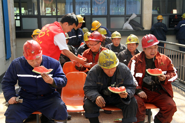 一塊塊甜美的西瓜,一杯杯冰爽的涼茶,一句句暖心的叮囑……,炎炎夏日,在陳家山煤礦井口卻顯得格外清涼又暖心。