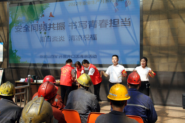 連日來,氣溫持續(xù)攀升,達到了“炙烤”模式,職工們?nèi)匀豁斂釤?,堅守崗位拼搏奮戰(zhàn)忙碌不停。為確保職工在高溫下身心健康和生命安全。近日,陳家山煤礦組織青年志愿者開展“夏日炎炎清涼祝?!被顒?,為高溫下堅守在一線職工送去絲絲涼意和誠摯關(guān)懷。