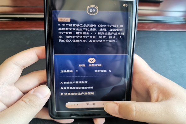 為全面營(yíng)造學(xué)法、守法、用法的濃厚氛圍,該公司在做好線下安全宣傳教育的同時(shí),積極探索安全教育培訓(xùn)新模式,開展“掌上”安全教育,動(dòng)員全體員工以鏈工寶APP為平臺(tái),廣泛參與“新安法知多少”網(wǎng)絡(luò)答題競(jìng)賽活動(dòng),通過每日通報(bào)積分情況,督促員工每日登錄學(xué)習(xí)答題,掀起了比知識(shí)、賽積分、爭(zhēng)做“安全達(dá)人”的學(xué)習(xí)新熱潮。