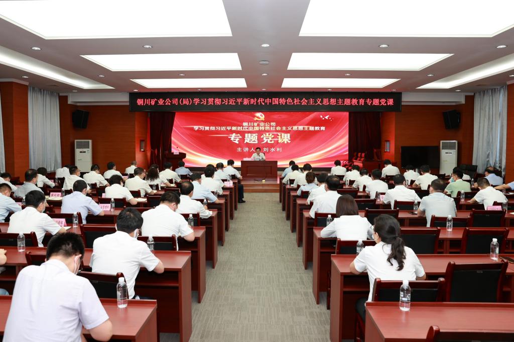 劉水利在授課時,以《感悟思想偉力,凝聚奮進力量,以主題教育成效推動銅煤高質(zhì)量發(fā)展》為題,從“開展集中教育是黨自我革命的重要途徑;深刻認識開展主題教育的重大意義;聚焦六大著力點切實增強開展主題教育的政治自覺思想自覺行動自覺;扎實開展好主題教育奮力譜寫銅煤高質(zhì)量發(fā)展新篇章”四個方面,緊扣以習近平新時代中國特色社會主義思想凝心鑄魂,以黨的創(chuàng)新理念武裝頭腦、指導實踐、推動工作,以主題教育煥發(fā)的力量加快企業(yè)高質(zhì)量發(fā)展,為黨員干部講授了一堂融理論指導性、工作針對性、實踐操作性為一體的生動黨課。