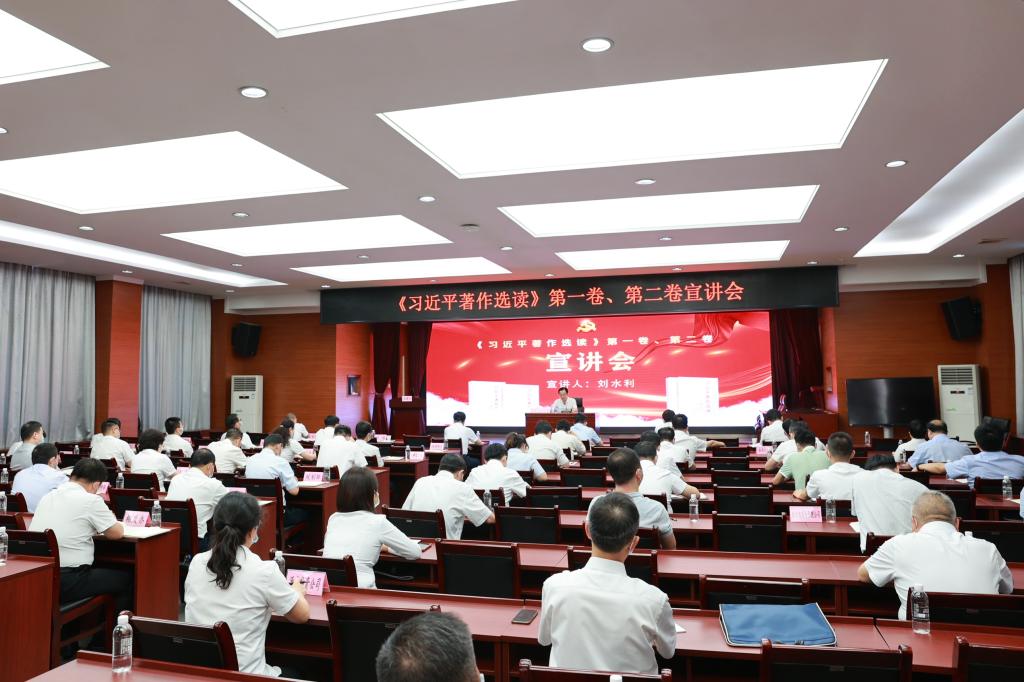 宣講中,劉水利從“深刻認識《習(xí)近平著作選讀》出版發(fā)行的重大意義、準確把握《習(xí)近平著作選讀》的豐富內(nèi)涵和精神實質(zhì)、學(xué)習(xí)領(lǐng)會《習(xí)近平著作選讀》的主要篇目、不斷把學(xué)習(xí)宣傳貫徹《習(xí)近平著作選讀》引向深入”四個方面,以深入淺出、準確生動的語言,對《習(xí)近平著作選讀》第一卷、第二卷進行了宣講解讀。