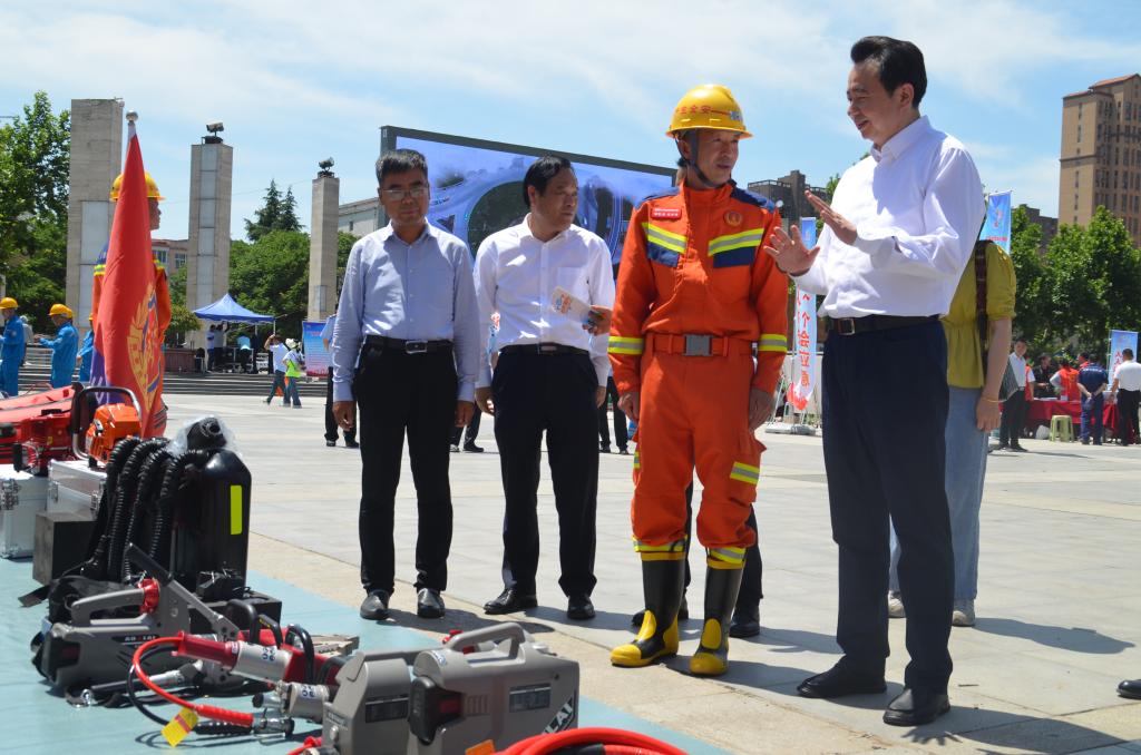 活動(dòng)現(xiàn)場,救護(hù)大隊(duì)設(shè)立安全宣傳咨詢臺(tái)和裝備展示區(qū),與廣大市民進(jìn)行面對(duì)面地互動(dòng)交流。參加啟動(dòng)儀式的指戰(zhàn)員針對(duì)安群眾提出的問題,進(jìn)行一一解答,進(jìn)一步增強(qiáng)群眾對(duì)安全常識(shí)、醫(yī)療急救等方面的了解。在裝備展示區(qū),指戰(zhàn)員詳細(xì)講解了電動(dòng)剪擴(kuò)器、液壓撐頂器、救援三腳架、50KW照明發(fā)電車、裝備車等救援裝備。活動(dòng)現(xiàn)場累計(jì)發(fā)放安全知識(shí)宣傳單200余份、有限空間知識(shí)宣傳單200余份。