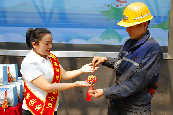 一年一端午,一歲一安康。節(jié)日當天,陳家山礦圍繞“人人講安全 個個會應急”安全生產(chǎn)月活動主題,充分發(fā)揮女工“半邊天”作用,開展“端午粽香系親情 平安香囊筑安全”井口慰問活動,為職工兄弟們送上“娘家人”的關心和祝福。