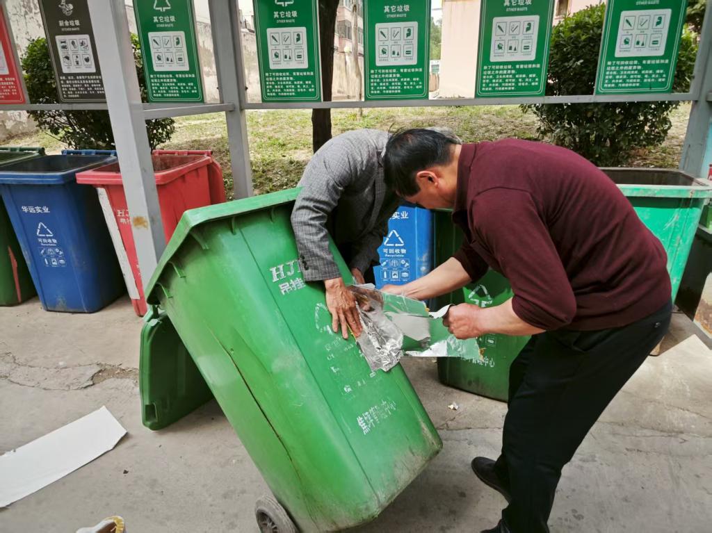 垃圾桶“煥新”:小修復(fù)省下大成本 該中心垃圾桶因長(zhǎng)期使用,部分出現(xiàn)裂縫、破損等問(wèn)題,若按常規(guī)換新,需投入不少費(fèi)用。管理中心職工主動(dòng)踐行“賺錢(qián)思維”,自發(fā)組成“修復(fù)小隊(duì)”。他們準(zhǔn)備好強(qiáng)黏合力防水膠帶、鐵絲等材料,對(duì)破損垃圾桶進(jìn)行“手術(shù)”,先用鐵絲對(duì)裂縫處打孔縫合加固,再用膠帶分別對(duì)垃圾桶內(nèi)外進(jìn)行粘補(bǔ),一番操作后,原本“傷痕累累”的垃圾桶又重新“上崗”。